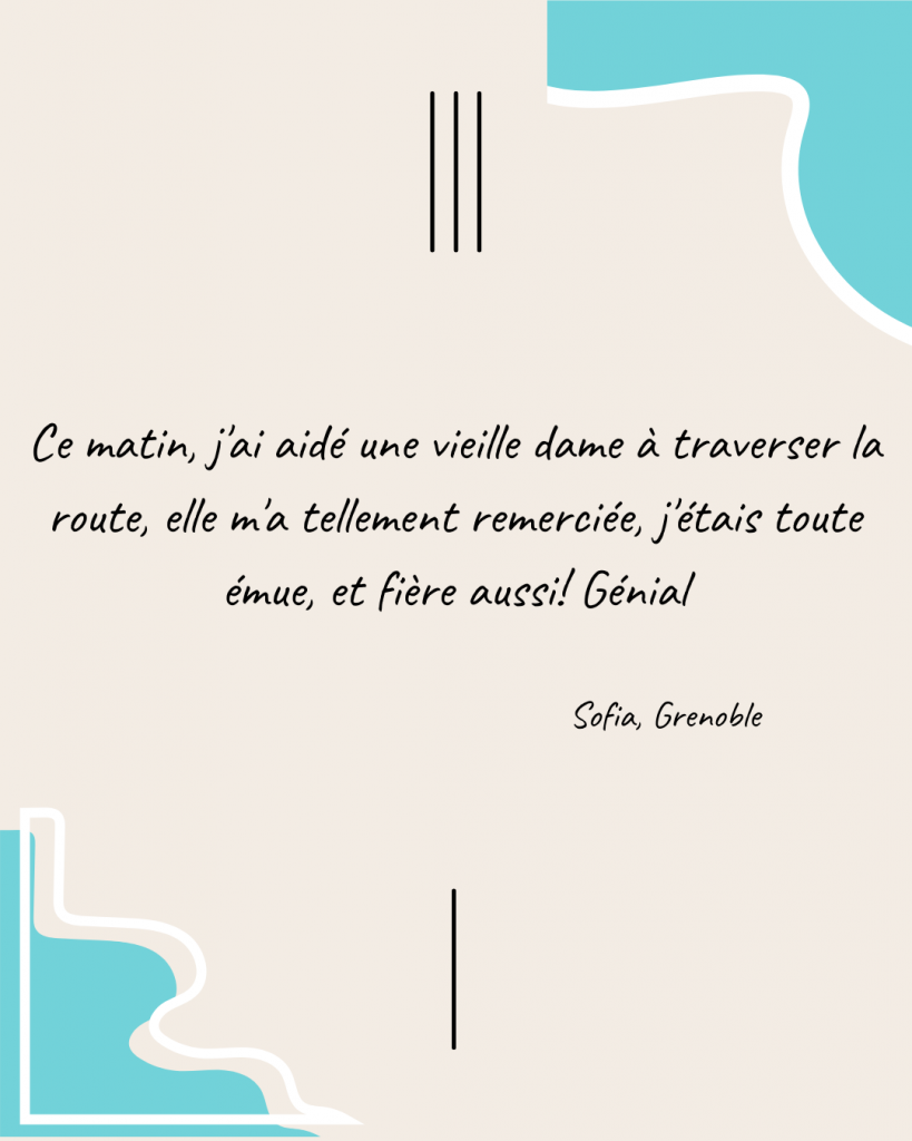 Ici, il n’y a ni jugement, ni contrainte : un endroit pour déposer en toute simplicité votre joie de ce jour. Cet instant de votre journée qui vous a fait du bien ! Que ce soit une petite histoire, ou un simple sourire échangé, chaque plaisir compte, est précieux, et mérite d’être partagé.
